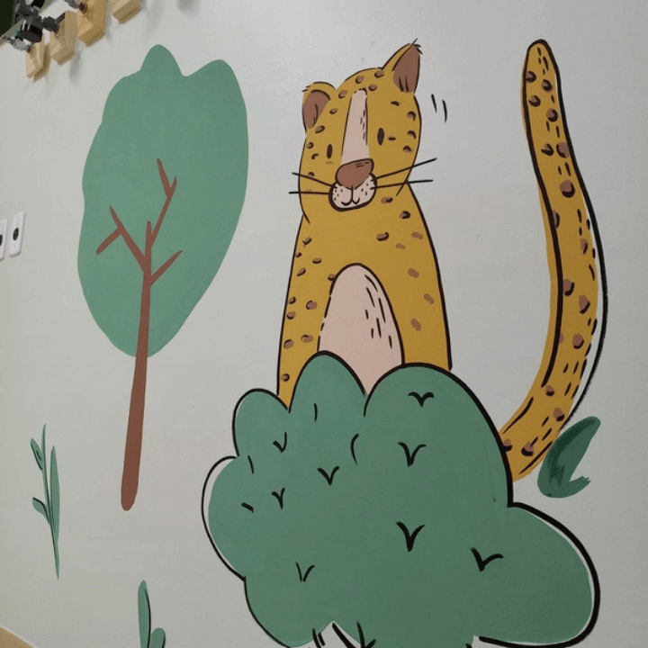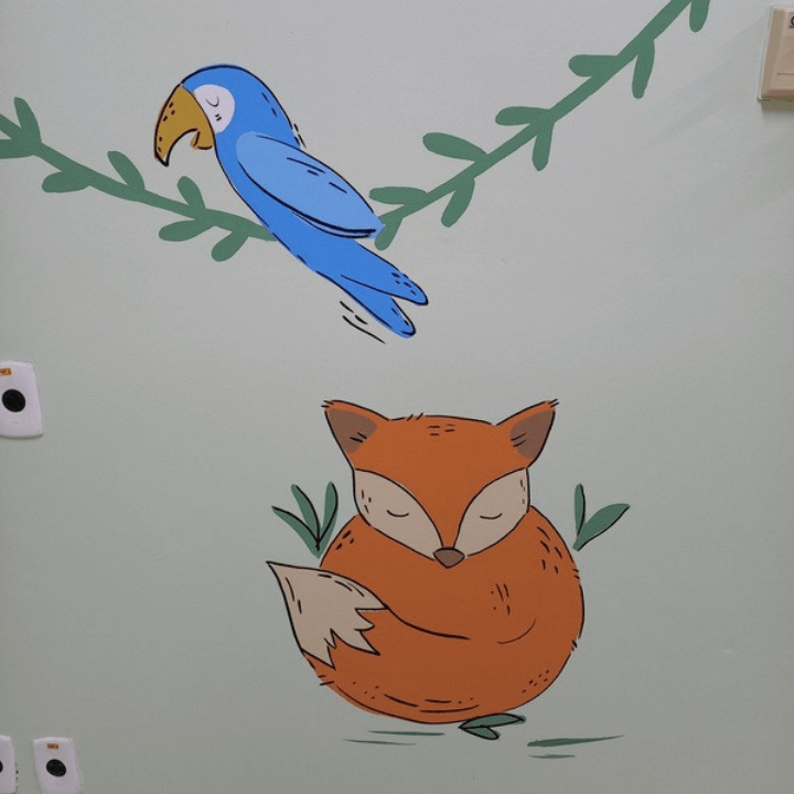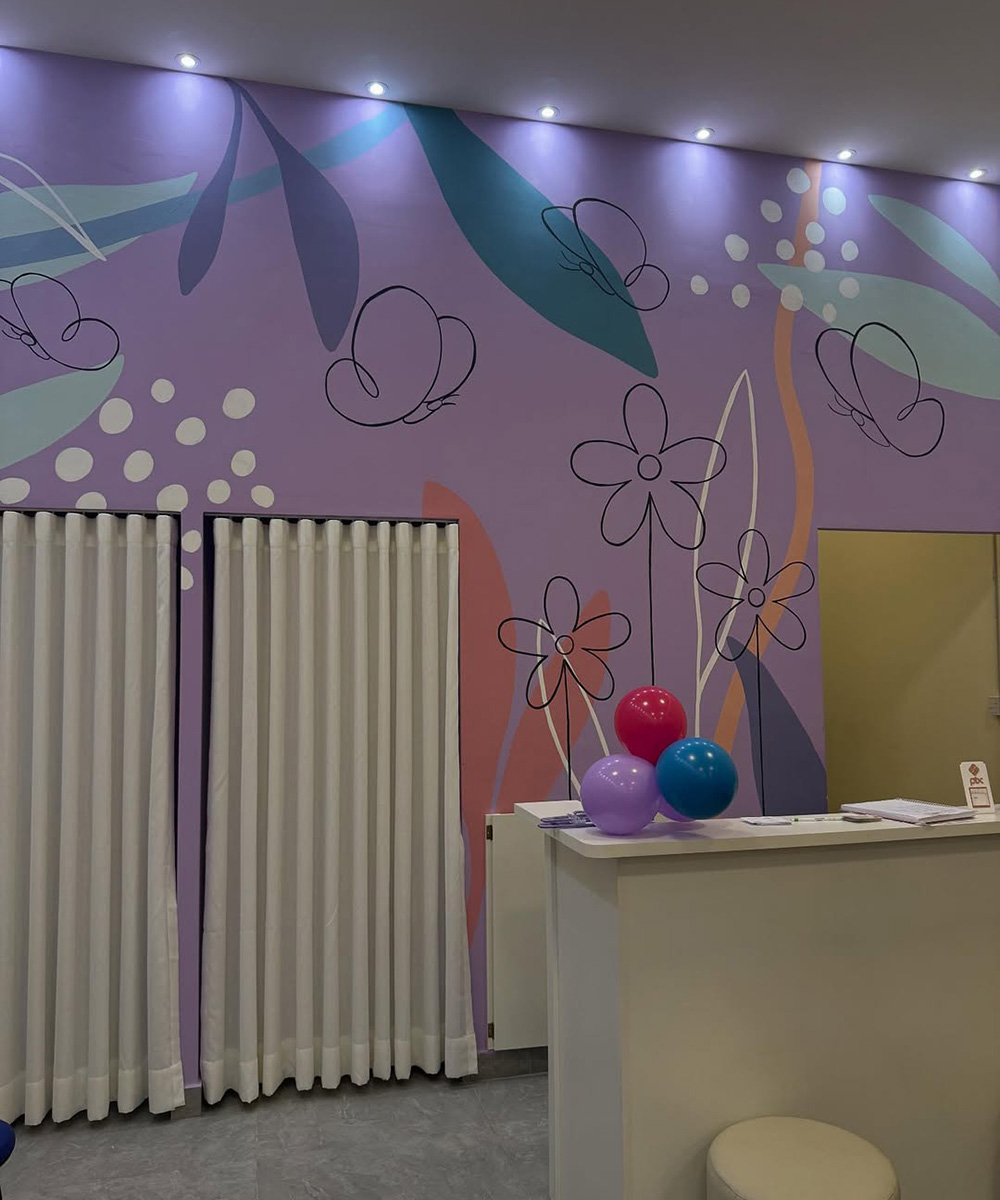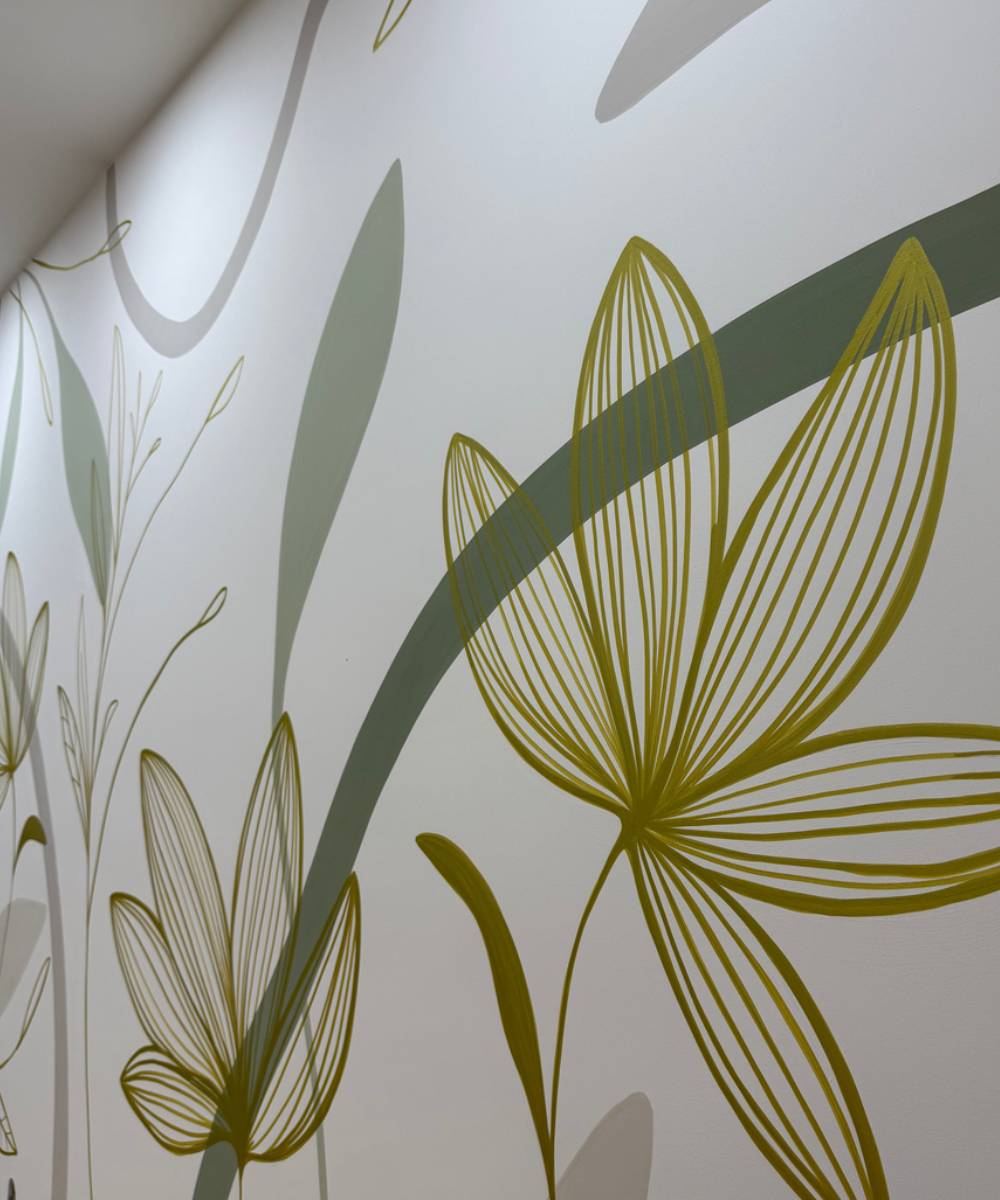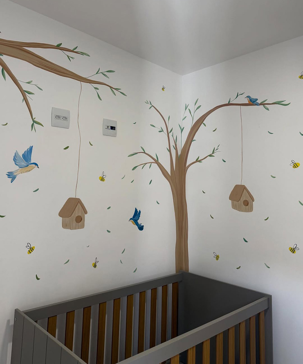 Pintura artística na Casa da Música, planejada para integrar identidade visual, fluxo do espaço e temática musical, contribuindo para um ambiente mais coerente com a proposta pedagógica da escola.
